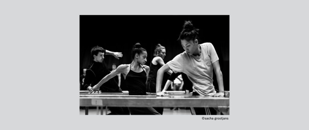 :テーブルダンス(『One Flat Thing, reproduced』の愛称)は2年前に一度上演していて、その時が初めてフォーサイスさんの作品を踊る機会となりました。リハーサルに彼のアシスタントの方が来て、振り移しをしてもらいました。NDTに、フランチェスカさん(Francesca Caroti)というリハーサル・ディレクターがいるのですが、私は偶然その方が踊っていたパートを担当しているので、オリジナルキャストの方に直接教えていただきました。